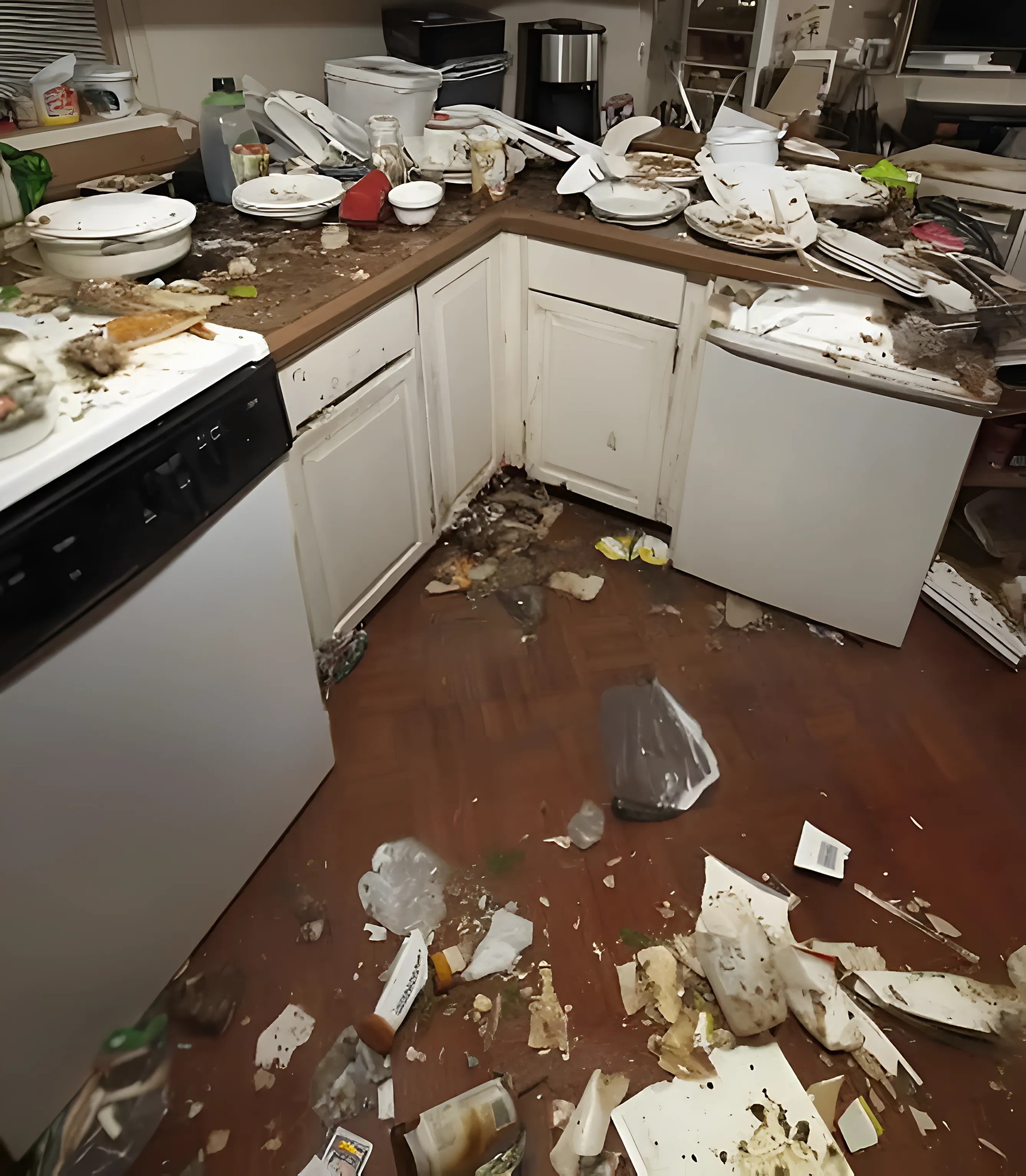 «Concentre-se em empacotar o lixo visível na sala de estar e na cozinha — embalagens podres de comida para viagem, embalagens vazias, garrafas.