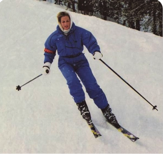 Zdjęcie Diany podczas jazdy na nartach.