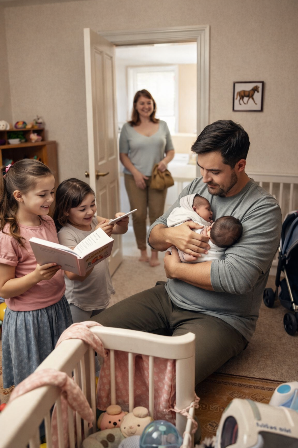 Alina i Polina na początku były zaskoczone. Ale szybko przyjęły braci. Pomagały: zmieniały pieluchy, kołysały wózek, śpiewały kołysanki. Mieszkanie zamieniło się w szalone przedszkole – krzyki, śmiechy, bieganina. Ale dom ożył. I ja też.