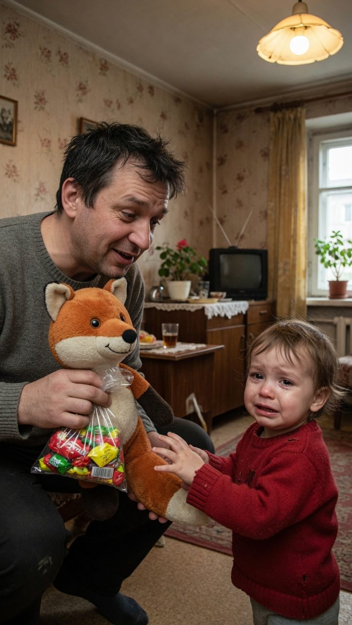 Później, gdy żona Iwana poznała dziewczynkę, położyli Saszę spać. Mężczyzna zamknął się w kuchni, wyjął butelkę wina i opróżnił szklankę jednym łykiem. Potem usiadł przy stole, twarzą w dłoniach i cicho płakał, tłumiąc każdy szloch, jakby bał się, że przez ściany przeniknie ten sam chłód, który panował w domu u byłej żony. Rano kupił całą paczkę cukierków, świeczki i małą zabawkową koronę. Następnego dnia były urodziny Saszy. Dziewczynka po raz pierwszy w życiu obudziła się przy gratulacjach, z zapachem ciasta i muzyką. Gdy zobaczyła worek cukierków, oczy zrobiły się wielkie, jakby po raz pierwszy uwierzyła, że szczęście istnieje nie tylko w marzeniach.
